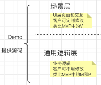 场景层,也叫 Scene 层,客户可以根据需要,集成具体的场景。Scene 层的代码,根据场景不同,会有不同的前缀进行区分。譬如,云课堂场景的代码前缀为 PLVLC,直播带货场景的代码前缀为 PLVEC,手机开播场景的代码前缀为 PLVLS。