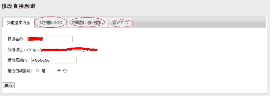 用户能自行管理直播地址,播放器呈现方式,直播开始前与中断时的广告样式。