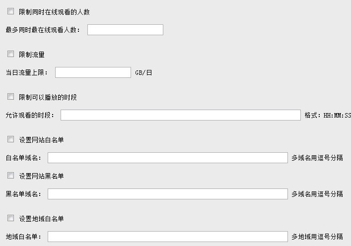 用户可对直播的在线人数,引用网址,直播地域做自定义用的限制: