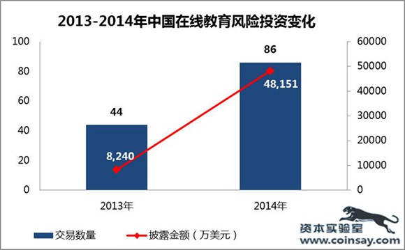 2014年中国在线教育投资86起,披露交易额4.8亿美元